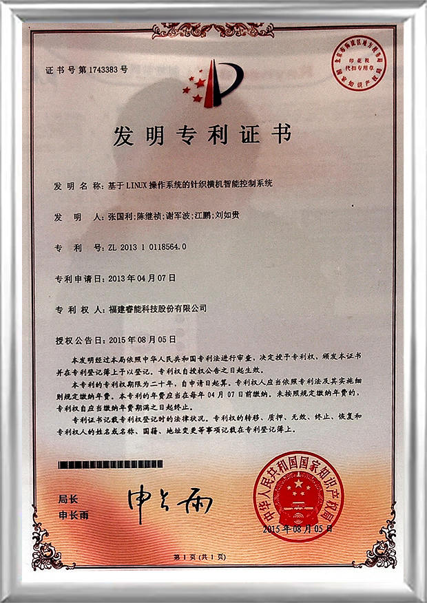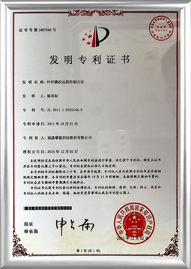 ● Diakui sebagai “Pusat Litbang Produk Sistem Kontrol Cerdas Mesin Rajut Datar Komputer Industri Mesin Tekstil Tiongkok”.
