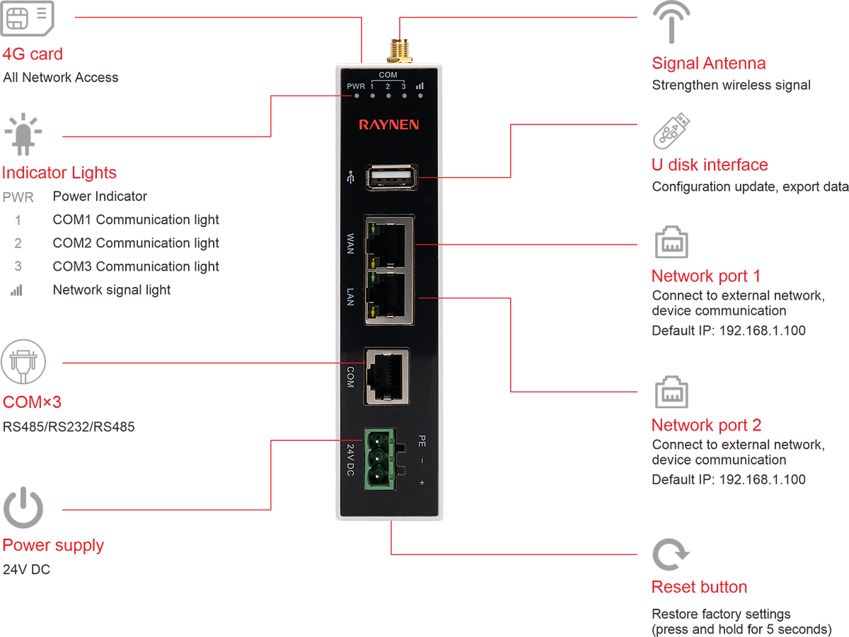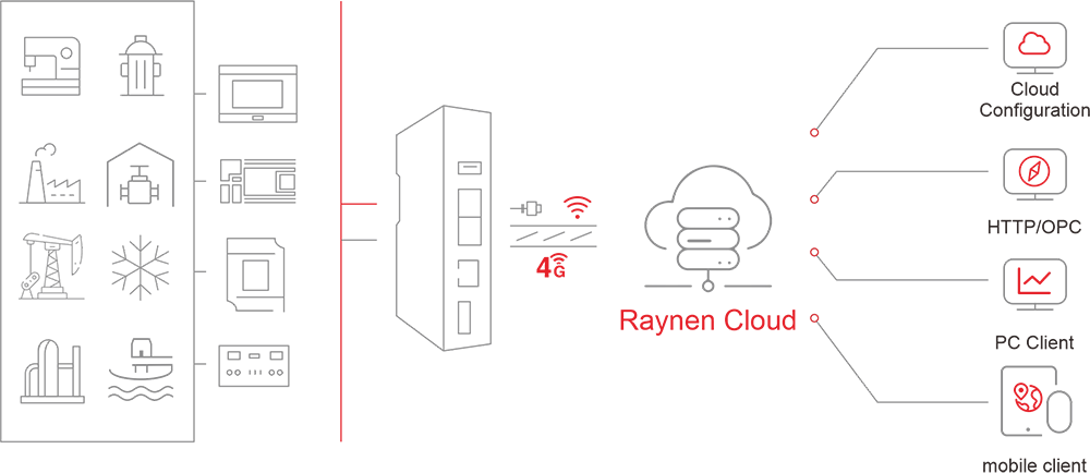 Raynen Cloud dihosting di server Alibaba Cloud, yang menerima data dari UBox di situs industri. Data di tempat dikumpulkan ke server, dan penyimpanan serta transmisi data direalisasikan, menyediakan interaksi data antara data di tempat dan klien jarak jauh.